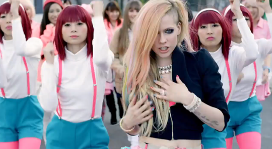 Le look complet d’Avril Lavigne dans le clip donne mal aux yeux. Couleurs flash, coupe de cheveux à la Skrillex, jarretelles en cuir, etc. Jean Airoldi donnerait sans aucun doute une contravention de style à la chanteuse.