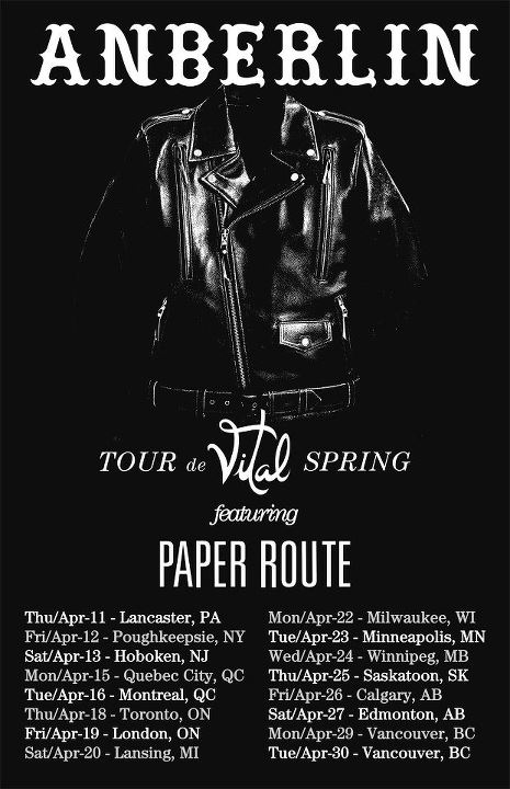 C’est les 15 et 16 avril que Anberlin s’arrêtera respectivement à Québec et Montréal. Le spectacle de Québec aura lieu au Cercle tandis que celui de Montréal sera au Théatre Corona. C’est Paper Route qui fait la première partie du band.