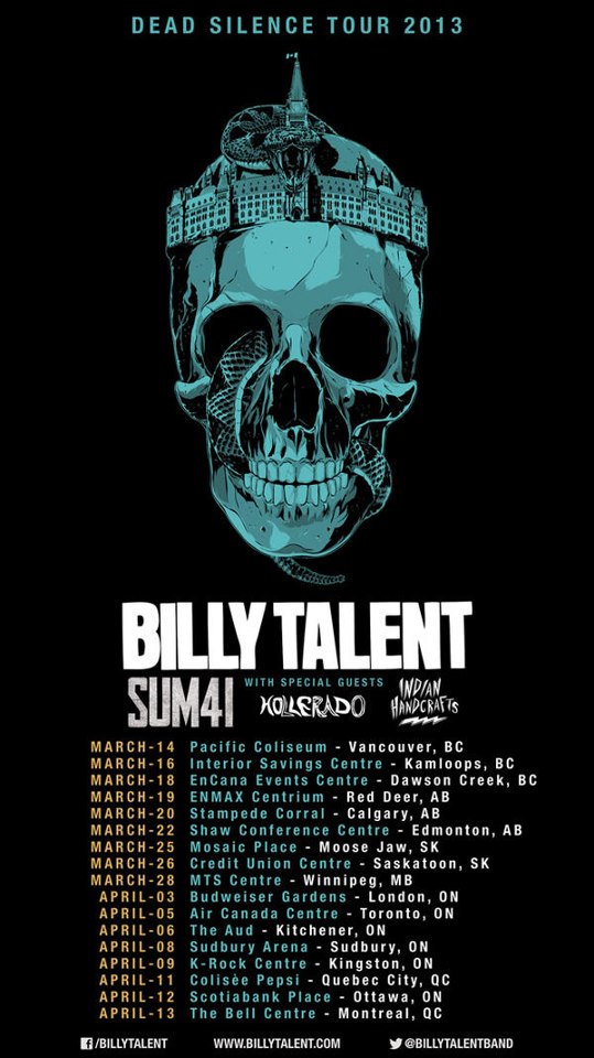 C’est maintenant confirmé, Billy Talent sera à Québec et Montréal en avril 2013. C’est Sum 41 qui assurera la première partie de cette immense tournée canadienne. Tous les détails dans “lire la suite”