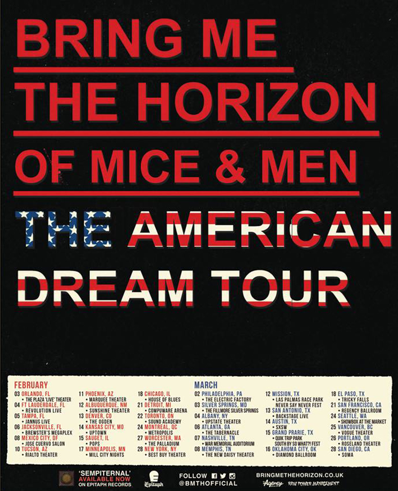Les rumeurs circulaient depuis quelque temps comme quoi Bring Me The Horizon et Of Mice & Men allaient faire une tournée ensemble, l’hiver prochain. C’est maintenant chose confirmée alors que les deux groupes parcourront les États-Unis au complet en plus de s’arrêter à Montréal.