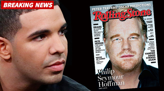 Drake vient de cracher sur la mort de Philip Seymour Hoffman alors qu’il a tweeté qu’il devait faire la couverture du magazine Rolling Stone, cette semaine, mais que, dû à la mort de Philip Seymour Hoffman, c’est ce dernier qui s’est retrouvé en Une.