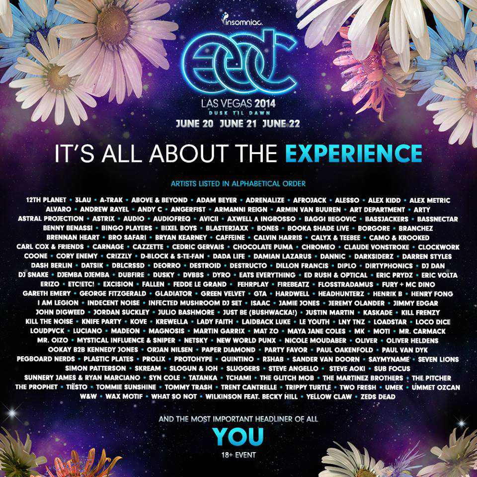 La programmation 2014 du Electric Daisy Carnival (EDC) a finalement annoncé sa programmation de son édition de Las Vegas, du 20 au 22 juin. Au programme plusieurs des plus grands noms du EDM comme Calvin Harris, Avicii, Tiësto, Hardwell et beaucoup plus.