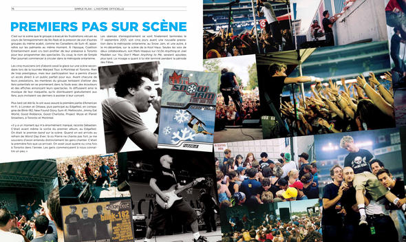 Kathleen Lavoie : Le livre remonte jusqu’aux débuts du groupe, et même avant!, puisqu’on s’intéresse d’abord à la première rencontre entre Chuck et Pierre, au Collège Beaubois, à Pierrefonds. Leur relation d’amitié est vraiment centrale dans l’histoire du groupe. C’est elle qui avait mené à la formation de leur premier band, Reset, et éventuellement, de Simple Plan. Le livre retrace ensuite les grandes étapes de leur ascension internationale, jusqu’à aujourd’hui. Sur le plan visuel, les fans seront vraiment gâtés! Les gars ont conservé tous leurs souvenirs — passes, billets d’avion, affiches, etc. —, que le graphiste Fred Jérôme a su bien mettre en valeur dans le livre. Il y a aussi une multitude de photographies exclusives réalisées par les photographes qui ont accompagné le groupe sur la route au cours des 10 dernières années.