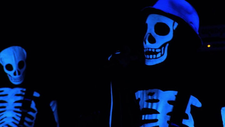 Hier, le groupe était de passage au populaire late night show Jimmy Kimmel. La différence, c’est qu’ils étaient tous habillé en skelettes.
