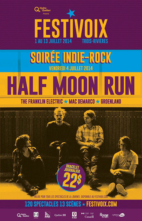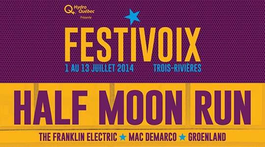Le FestiVoix de Trois-Rivières se déroulera du 1er au 13 juillet. La programmation 2014 est surprenante et très complète avec la présence de groupes comme Half Moon Run, Louis-Jean Cormier, Groenland, Radio Radio, Mac DeMarco et plus.