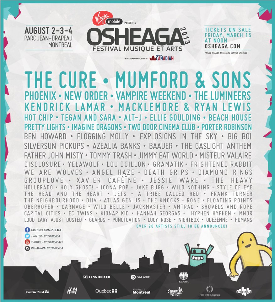 Mise à jour (22/05/13) : L‘horaire complet de Osheaga 2013 est disponible ici.