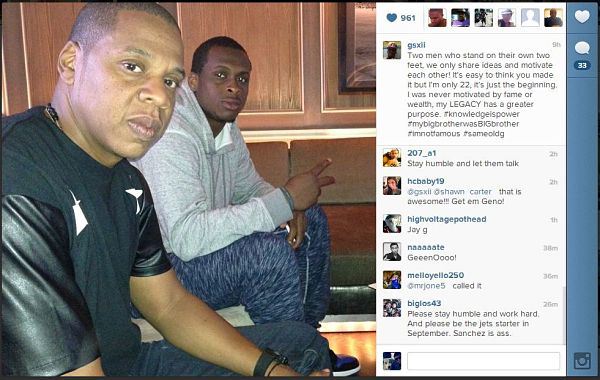 Même si Jay-Z vient d’annoncer son nouveau disque Magna Carta Holy Grail, il confirme maintenant qu’il veut se lancer dans le sport en devenant agent de joueurs. Il avait déjà courtisé le quart-arrière de Jets de New York, Gino Smith. La situation entre les deux hommes n’est pas confirmée puisque Jay-Z n’aurait pas les papiers requis pour être agent de joueur. Mais Gino Smith avait posté une photo sur Intagram le montrant avec Jay, confirmant presque le fait qu’il était signé avec Roc Nation Sports, la compagnie de Jay-Z :