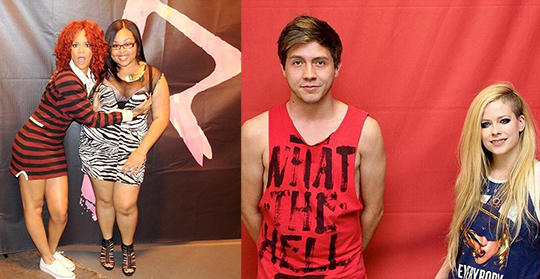 Pendant que les fans de Avril Lavigne n’ont pas le droit de la toucher lorsqu’ils paient 400$ pour la rencontre, les fans de Rihanna ont droit à tout le contraire. Photos des deux différents types de rencontres.