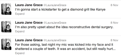 C’est un fan qui est monté sur la scène et qui a accroché le micro qui a cassé les dents de la chanteuse. Cette dernière a commenté sur Twitter :