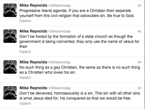 C’est lui, Mike Reynolds, qui est allé de ces propos vraiment insignifiants. Sérieux, en 2013, faire des commentaires homophobes c’est out et vraiment déplacés. On sait que le groupe est vraiment chrétien mais ça ne change rien à la façon de voir les choses.