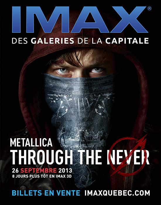 Metallica Through the Never – L’Expérience IMAX 3D est présenté au IMAX des Galeries de la Capitale dès le 26 septembre. Les billets sont disponibles sur www.imaxquebec.com.
