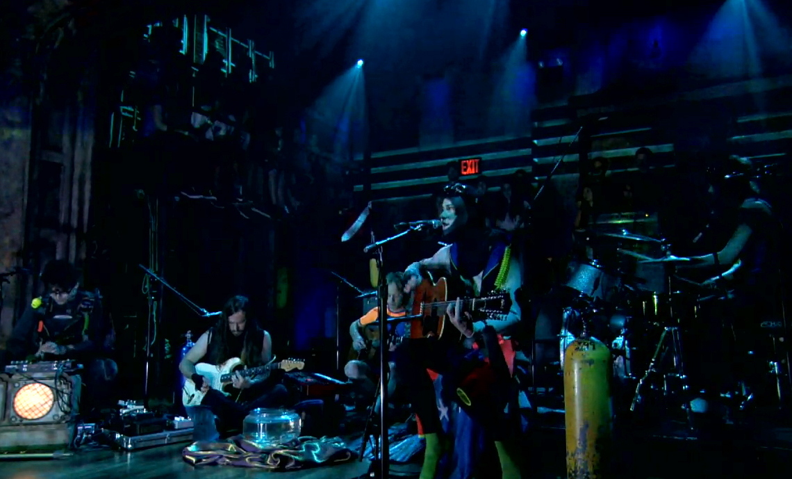 Ce que j’aime du fait que MGMT lance un nouvel album est qu’ils sont en tournée promo partout dans le monde. Et tournée promo veut dire qu’ils font des prestations dans presque tous les shows de télévision. Cette fois ils étaient déguisés en plongeurs sous marins avec palmes et tubas.