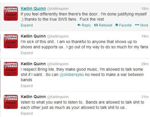 Est-ce que Kellin Quinn l’a échappé? Est-ce que sa célébrité commence à lui monter à la tête? On sait qu’il n’a pas aimé les VMAs et on peu maintenant dire qu’il n’aime pas Oliver Sykes…