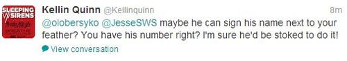 Ce à quoi Kellin Quinn répond que Oliver Sykes devrait se faire tatouer le nom de Jesse en plus de la plume qu’il a dans le visage :