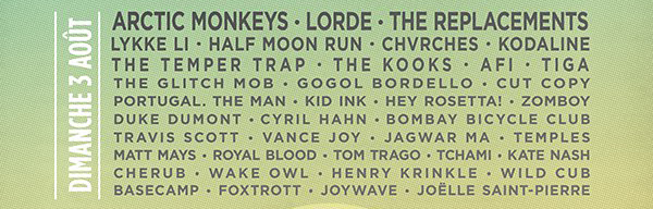 Avec Arctic Monkeys, Lorde, Half Moon Run, CHVRCHES, Lykke Li, The Glitch Mob, Travi$ Scott, Vance Joy, Kodaline et autres, la journée du dimanche est définitivement la meilleure de Osheaga 2014.