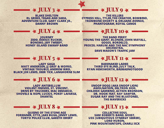 Ottawa Bluesfest 2014 : Programmation 2014 avec The Killers, Queens Of The Stone Age, Journey, Zedd et Lady Gaga
