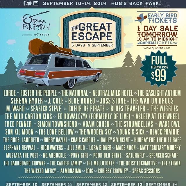Avec sa programmation 2014, le Ottawa Folk Festival vient de se placer dans les événements à ne pas manquer cet été alors que The National, Lorde et Foster The People ont été annoncés comme têtes d’affiche de l’édition qui se tient du 10 au 14 septembre.