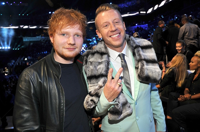Ed Sheeran s’en est remis et chillait avec Macklemore qui était assis juste a côté de lui :