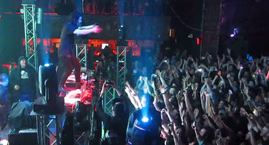 L’histoire remonte en 2012. Skrillex, Sonny John Moore de son vrai nom, jouait au bar The Belasco, à Los Angeles à l’occasion d’un party dans le cadre des GRAMMYs. Fidèle à ses habitudes, il a fait quelques stage dives tout au long de sa performance.