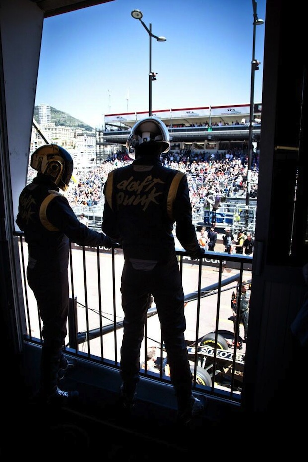 Daft Punk a récidivé encore une fois, aujourd’hui, en faisant leur première apparition publique depuis la sortie de leur nouveau disque, Random Access Memories, au Grand Prix de Monaco. En plus d’avoir une formule 1 à leur nom, Daft Punk était présent dans les stands de l’écurie.
