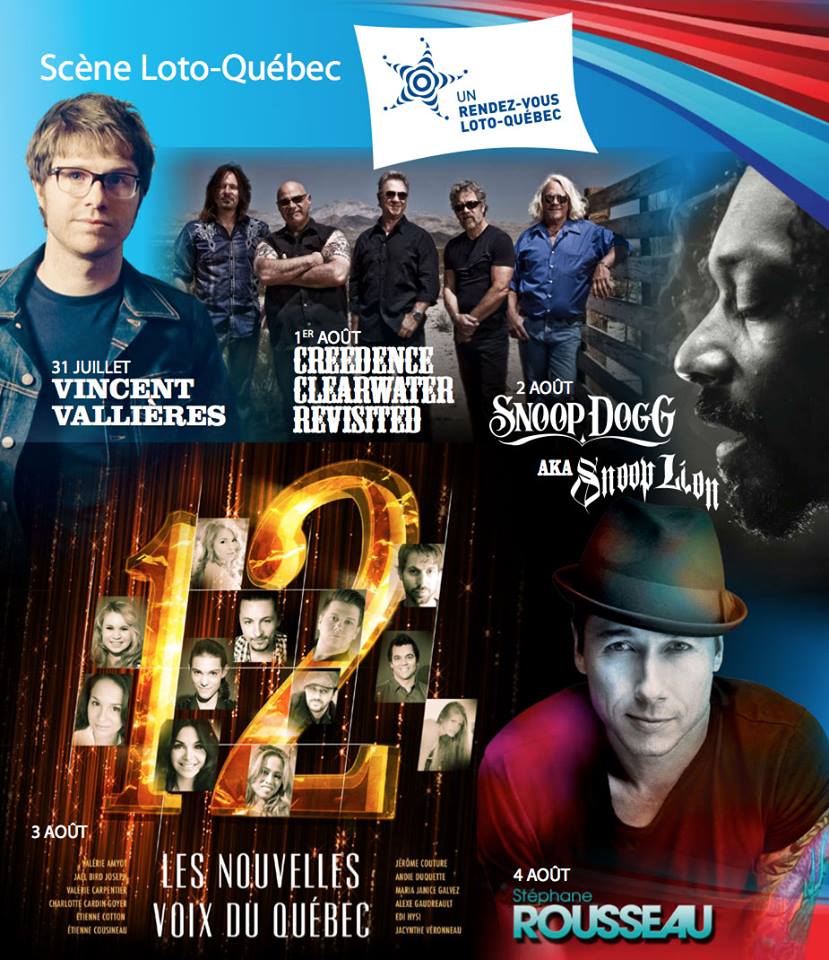 C’est du 31 juillet au 4 août que le Festivent 2013 fêtera ses 32 années d’existence. Comme programmation 2013 du festival de Lévis, en banlieue de Québec, il y a des artistes tels que Snoop Dogg, Vincent Vallières, CCR, les participants de La Voix et plus.