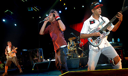 Le chanteur de RATM Zack de la Rocha et le bassiste Tim Commerford sont quant à eux moins visibles.