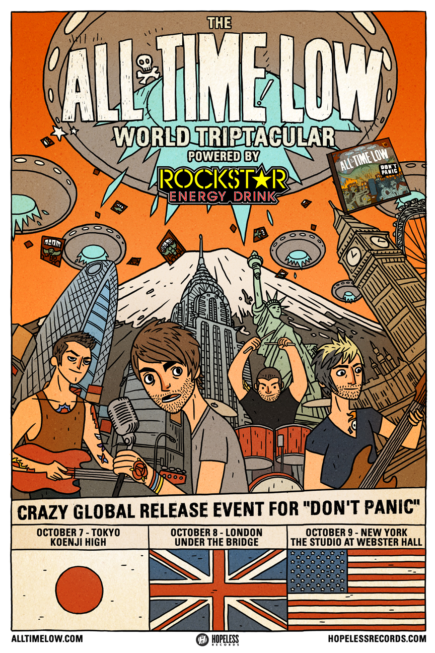 All Time Low lançait son cinquième disque, Don’t Panic, le 9 octobre dernier. Pour l’occasion, le groupe a joué trois shows en trois shows dans trois continents différents. Tokyo, Londres et New York étaient au programme du World Triptacular. Voyez le set complet du show de New York dans “lire la suite”