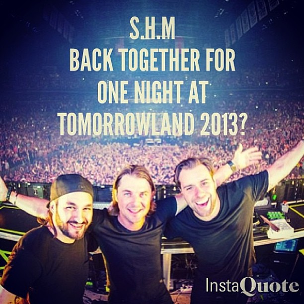 Les festival de musique électronique Tomorrowland 2013 a présentement lieu à Anvers, en Belgique. Tomorrowland regroupe toujours les plus grands DJs du monde. Cette année, les festival a laissé croire que Swedish House Mafia pourrait faire une réunion a Tomorrowland 2013.