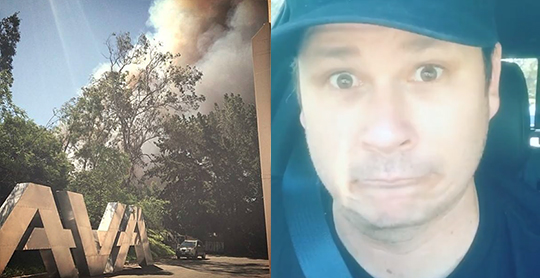 À voir les photos que Tom a mises sur son compte Instagram, le feu semble très dangereux. Il en a emmené avec lui que l’essentiel : ordinateurs et leur matériel d’enregistrement.
